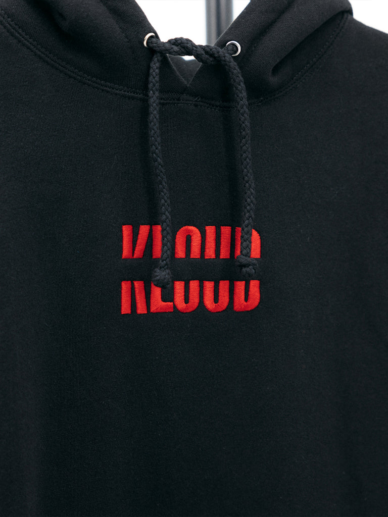 KLOUD Hoodie: The cult classic. Features a KLOUD red logo embroidered and centered on the front, a large print logo on the back, and a sewn logo tag on the bottom left hem. These hoodies are soft, heavy, and wear well in the colder months.